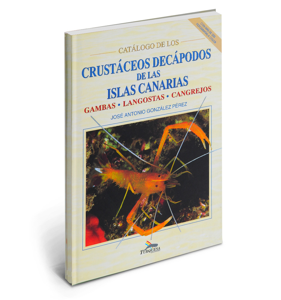 Se trata de un catálogo, ilustrado con magníficas fotografías que contiene las especies de Crustáceos Decápodos (gambas, langostas y cangrejos) del área de Canarias. Mediante textos sencillos y amenos, para cada especies se describen el hábitat y las relaciones ecológicas conocidas en las Islas y su entorno zoogeográfico, así como el posible interés y los factores de amenaza. Es una obra de gran valor divulgativo imprescindible para que estudiantes y amantes de la Naturaleza en general se inicien o completen su comprensión sobre la bioecología de estos crustáceos y el medio marino litoral y profundo.